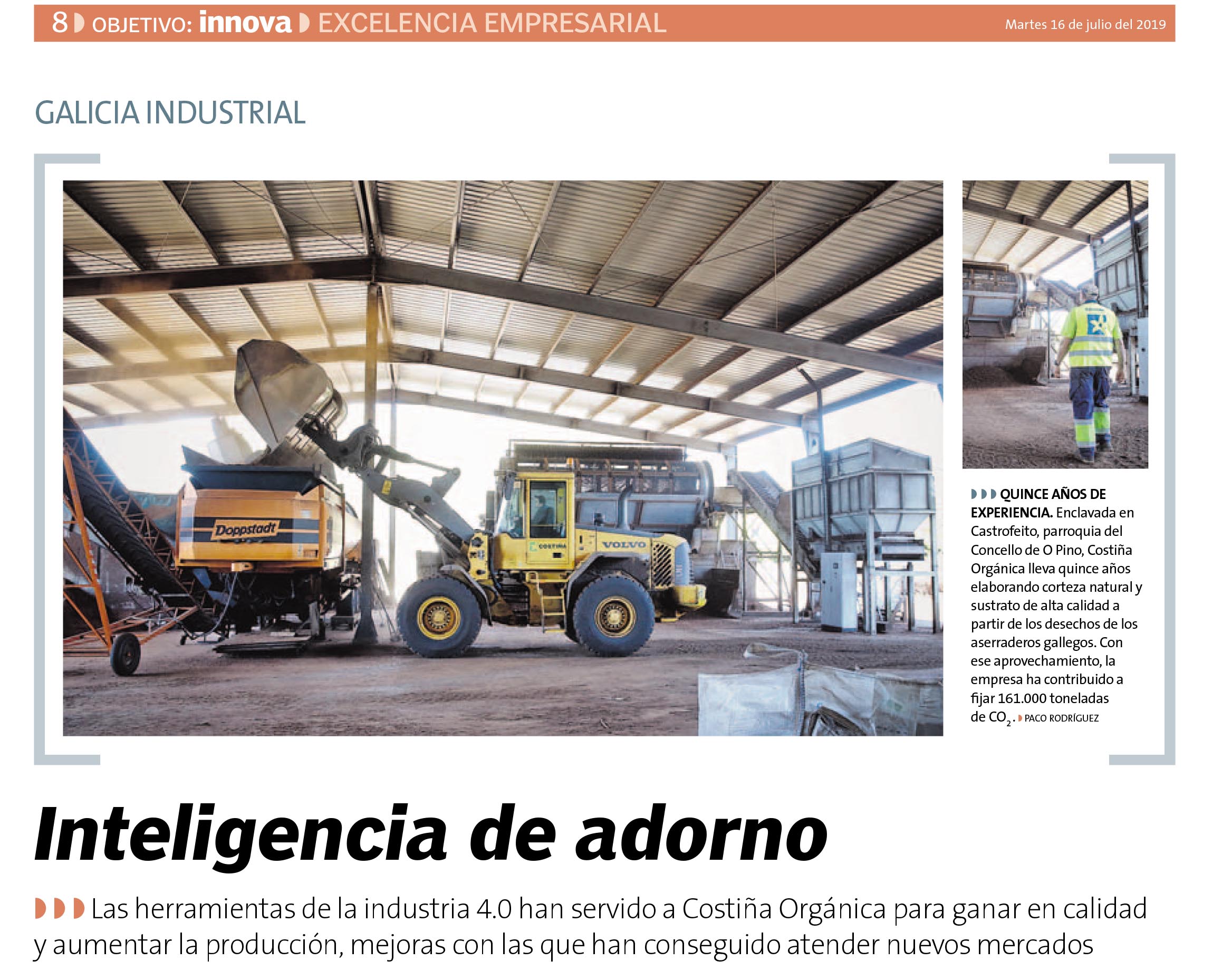 Costiña Orgánica, en su firme apuesta por la calidad y la tecnología de automatización fue destacada el pasado 16/07/19 en una publicación en el diario La Voz de Galicia, destacando en ella nuestro firme compromiso por la utilización de la tecnología en pro de la obtención de productos de gran calidad aprovechando las posibilidades que nos ofrece la tecnología.