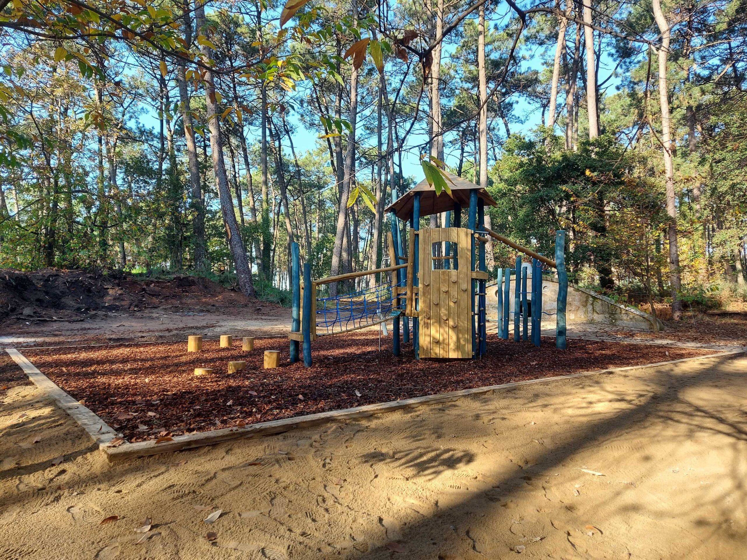 Pero bien es cierto que hay proyectos o aplicaciones de nuestros productos que, debido a su singularidad, gozan por nuestra parte de una mayor simpatía y este es el caso. Recientemente hemos suministrado corteza como superficie de absorción de impactos de un parque infantil en La Aldea de los Grovits en la Illa de a Toxa (Pontevedra). Precisamente la aplicación de corteza como acolchado (mulch) según la norma UNE-EN-1.177 cobra especial interés especialmente en parques en los que se pretende integrar con el entorno como es el caso.