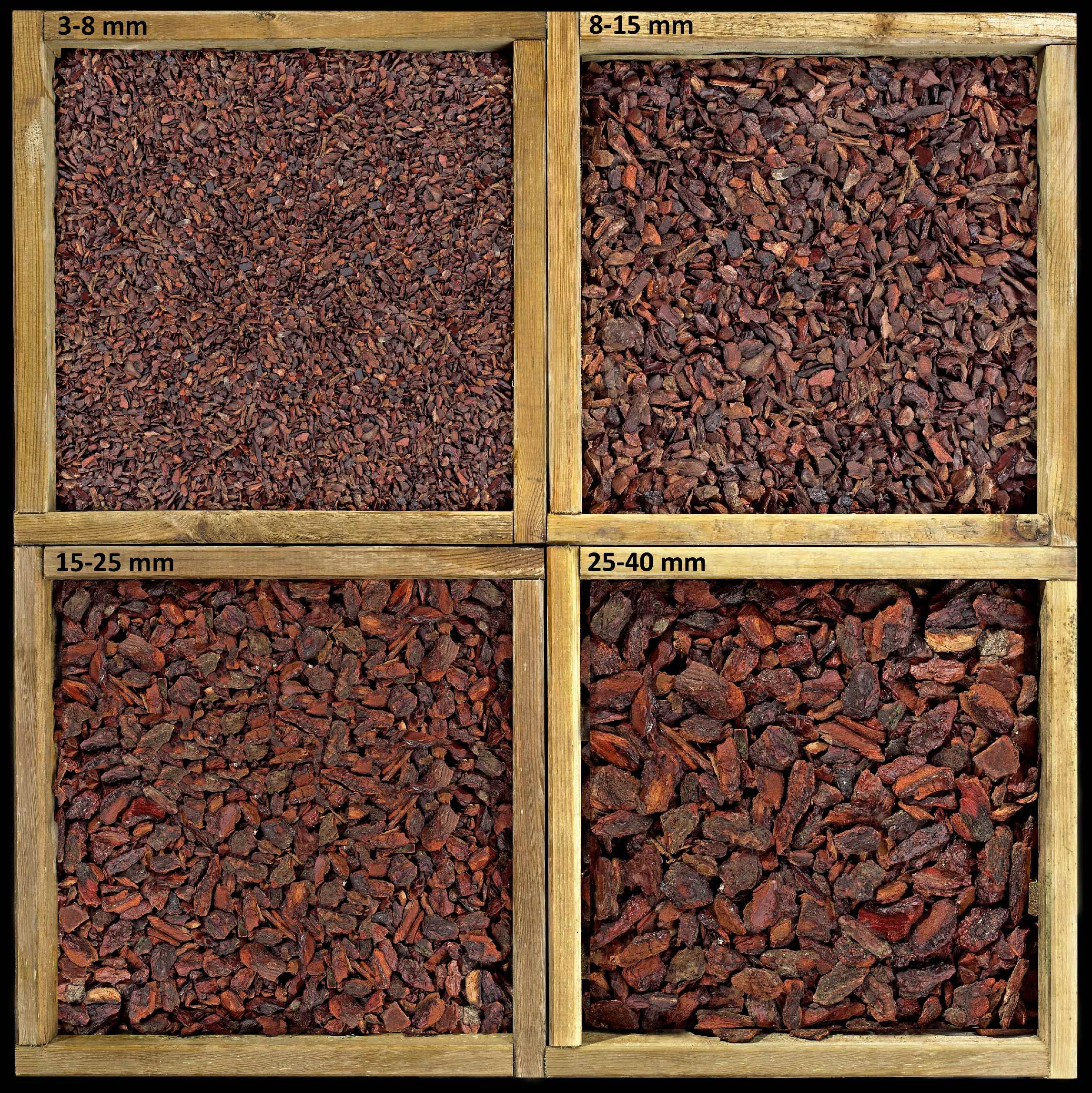 Comentarios: Producto Orgánico. Cumple con la normativa europea CE 835/2007. Efecto decorativo, evita la aparición de malas hierbas hasta un 90%. Aísla el suelo de congelación y excesos de evaporación por calor. Producto idóneo para la aplicación en bio-filtros debido a su bajo contenido en finos. Perfecto para su uso en cultivo de orquídeas y arándanos.