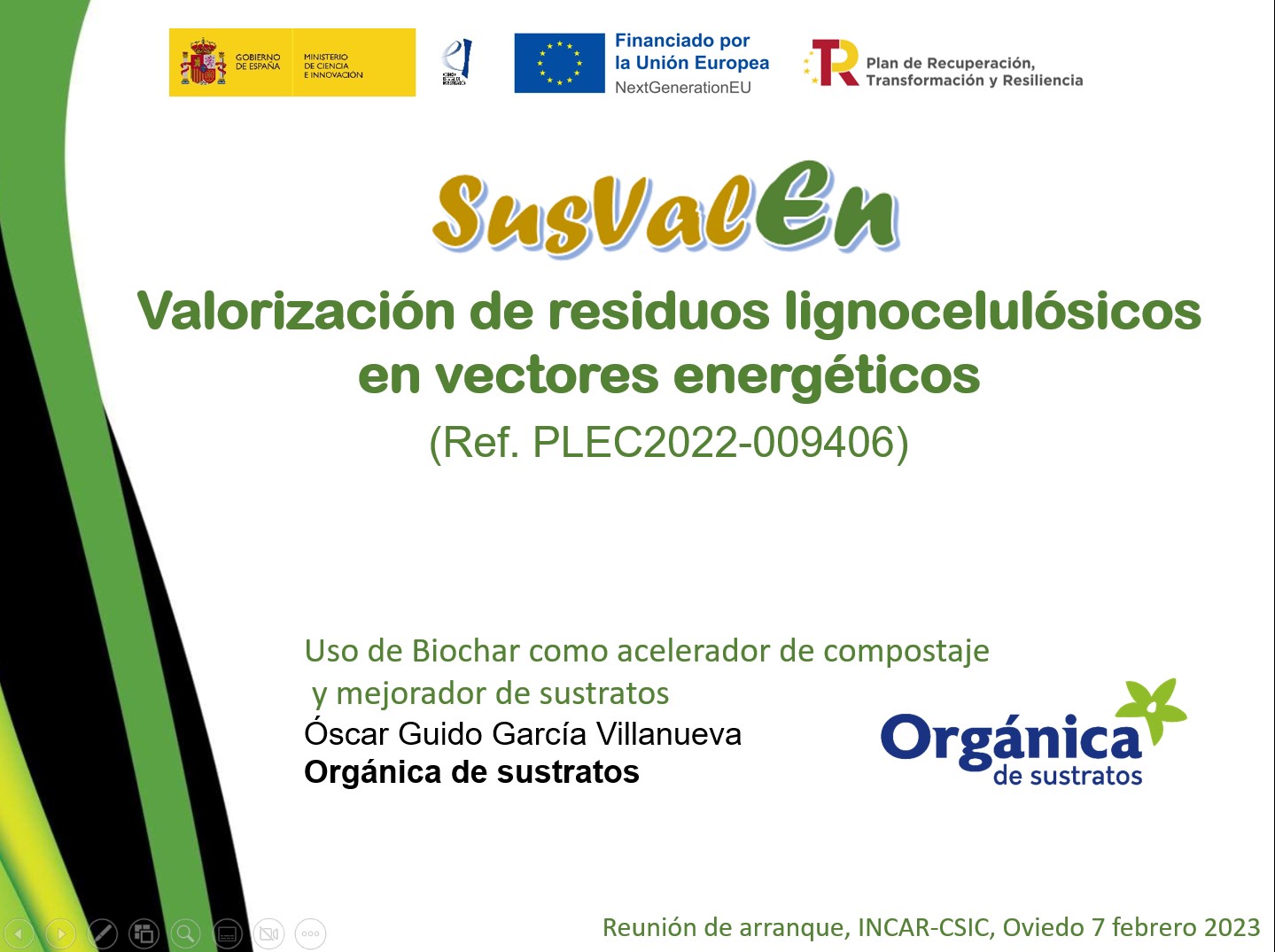 El proyecto en sí tiene como objetivo, como dice el proyecto, la valorización de subproductos lignocelulósicos en vectores energéticos. En nuestro caso, la colaboración va más encaminada en la valorización de dichos subproductos lignocelulósicos en la fijación de CO2 no sólo en cuanto a la conversión de los mismos en Biochar sino en estudiar los posibles beneficios a la hora de aplicarlos en el proceso de compostaje así como a la hora de obtener un producto comercial con un balance negativo en carbono.